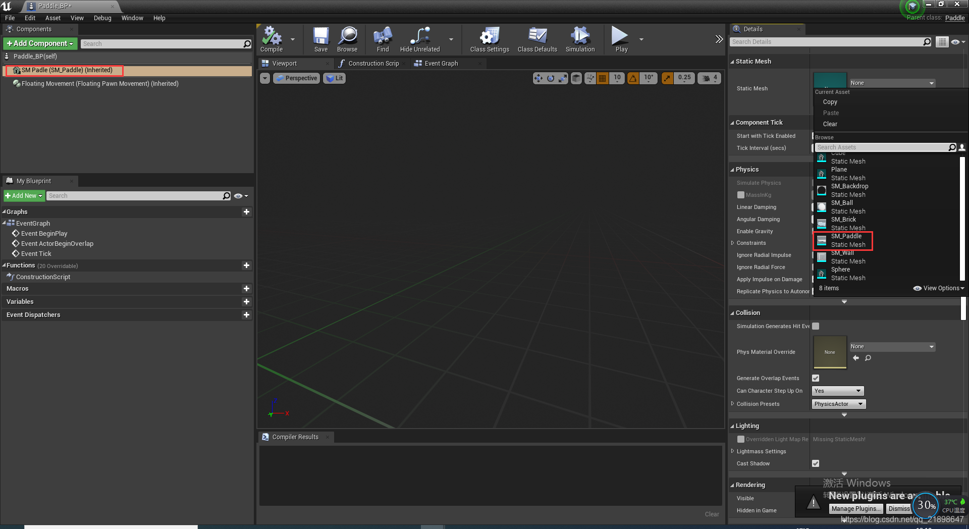 在Paddle_BP蓝图设置SM_Padle的mesh