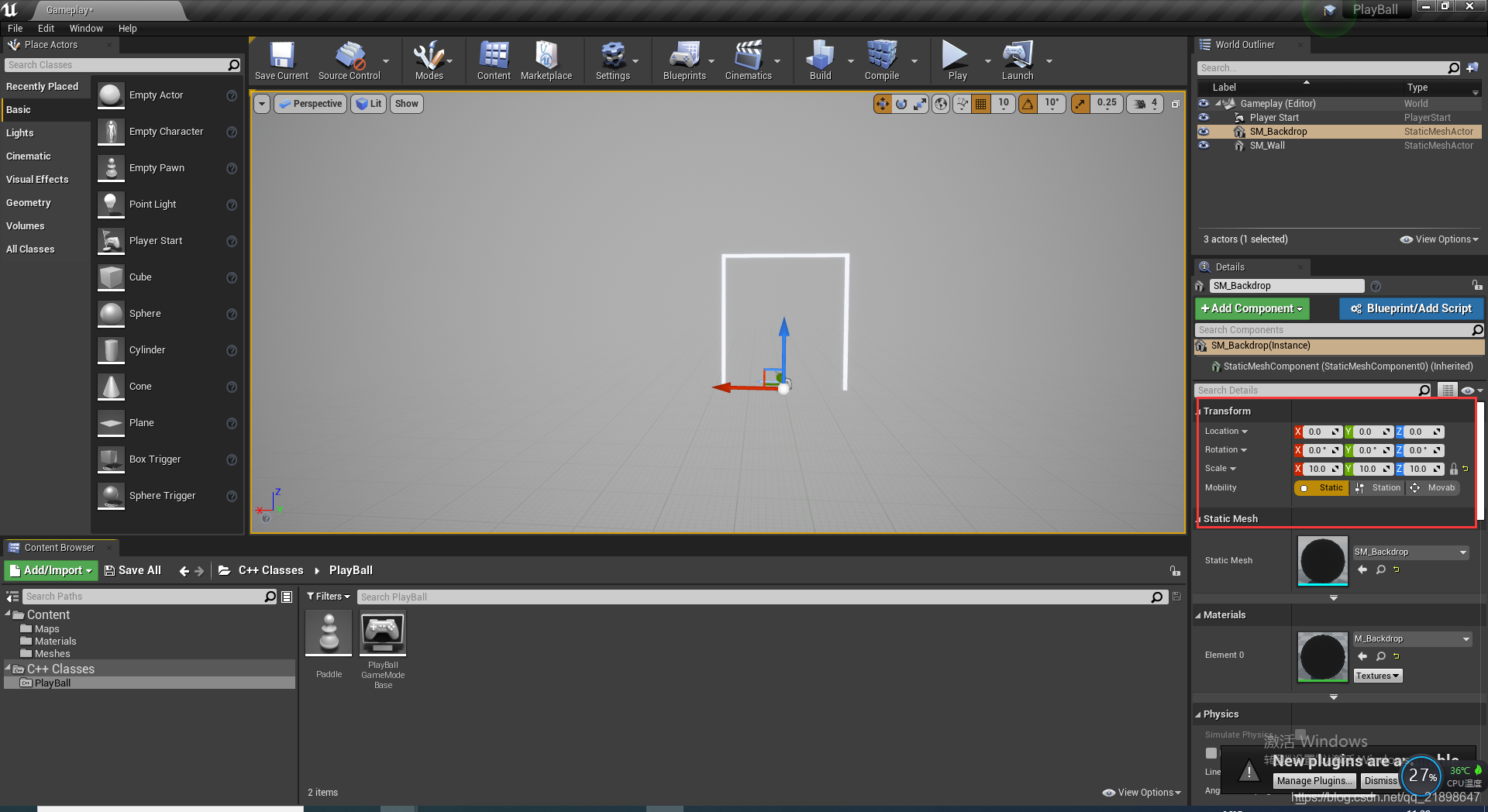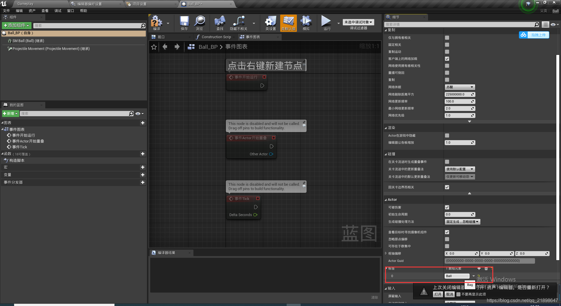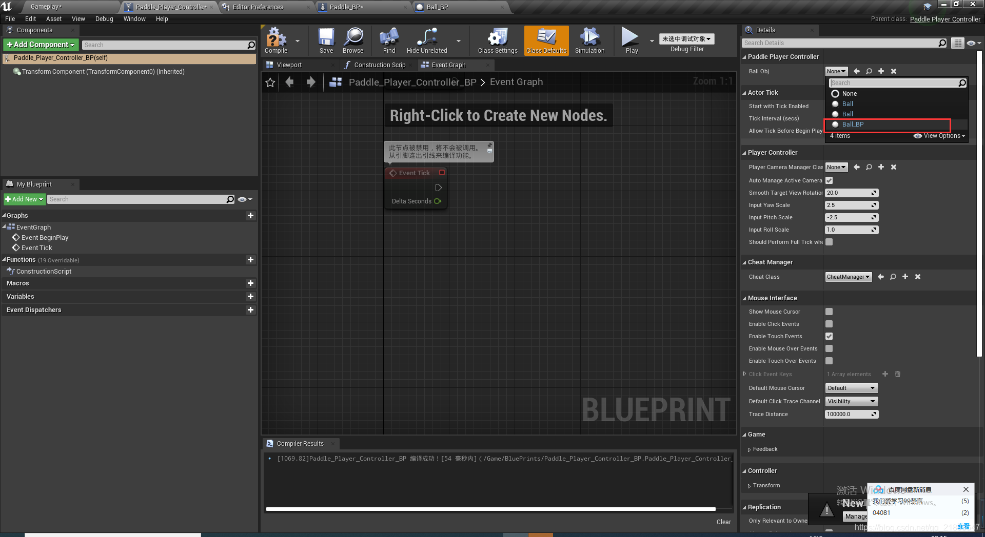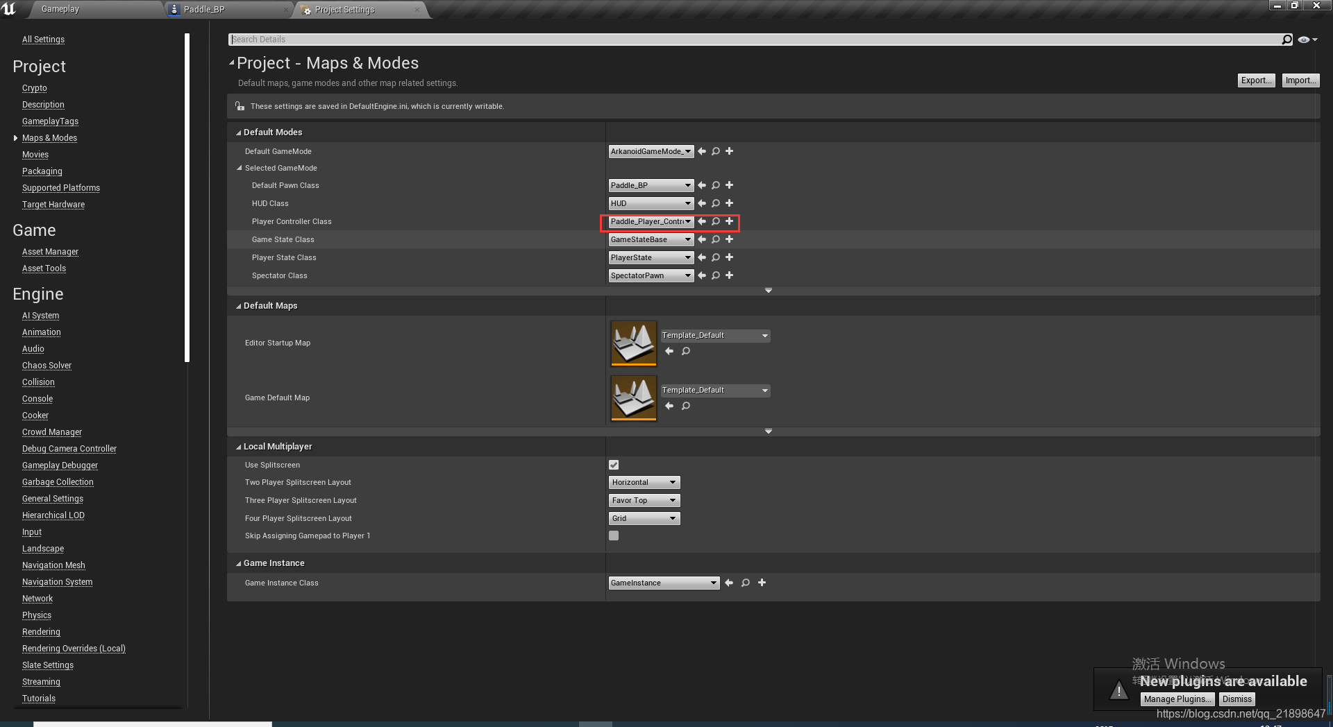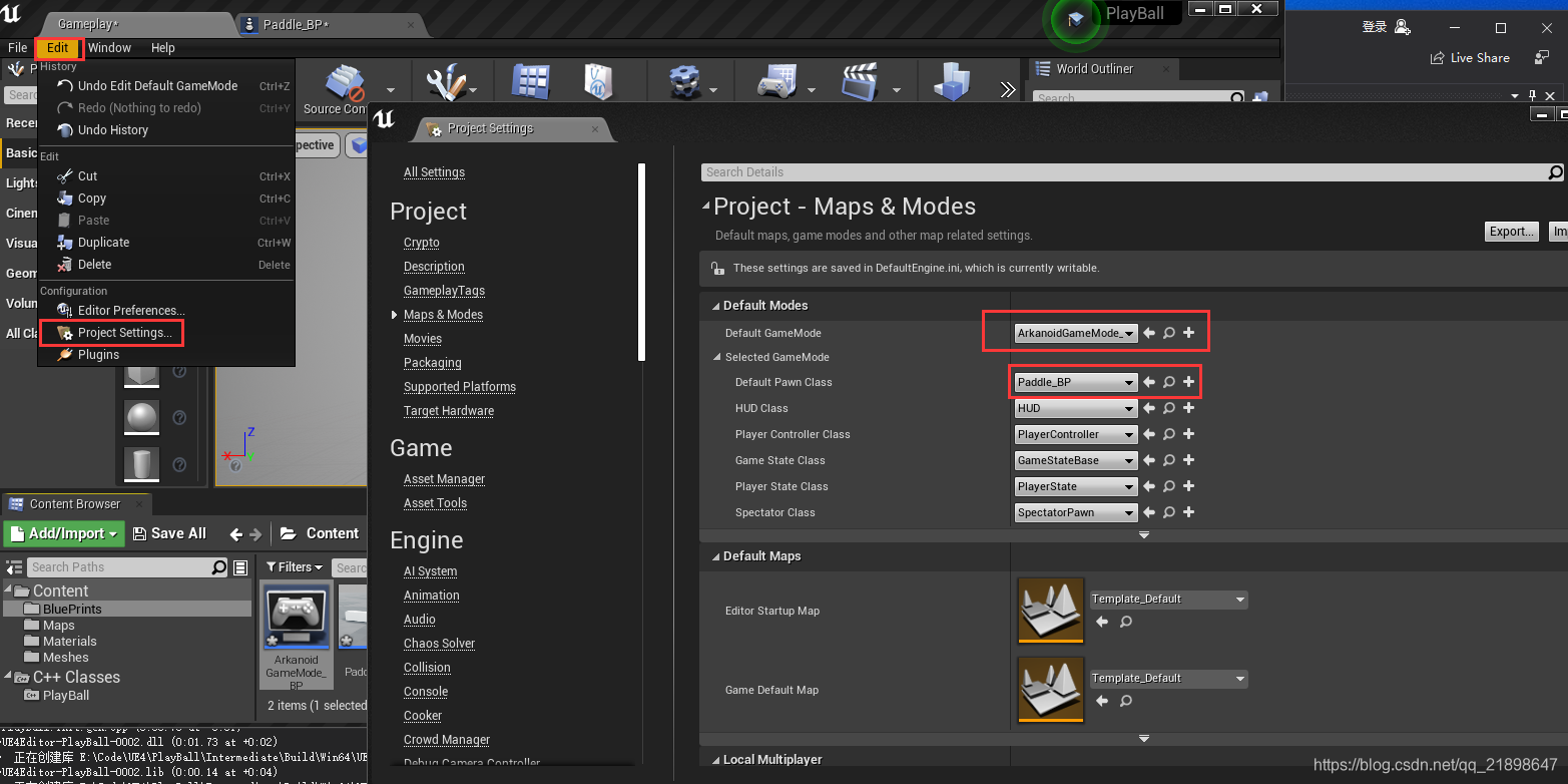 这里需要注意的是,在关卡中只需要放PlayerStart即可,不需要放Paddle_BP,否则会不能移动。