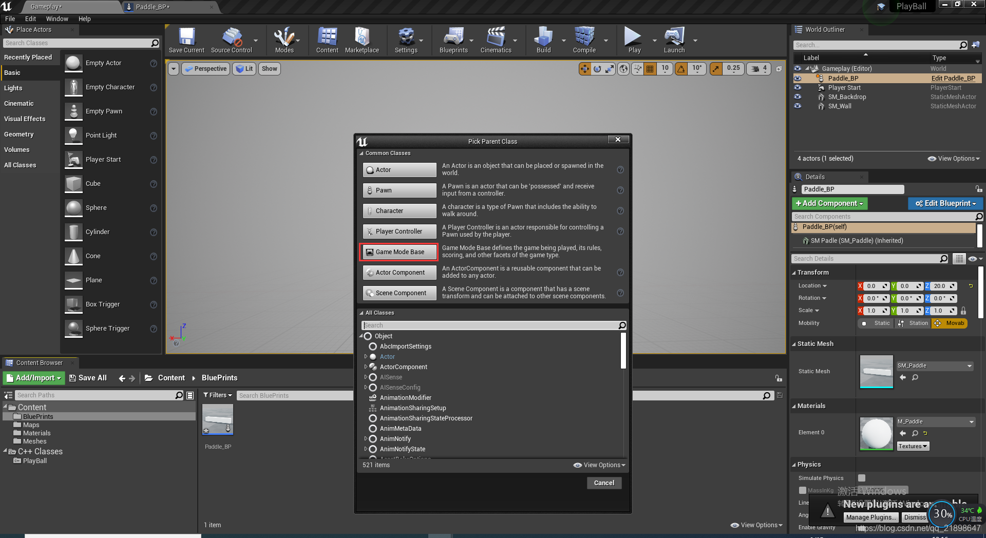 在场景中新建GameMode并改名为ArkanoidGameMode_BP