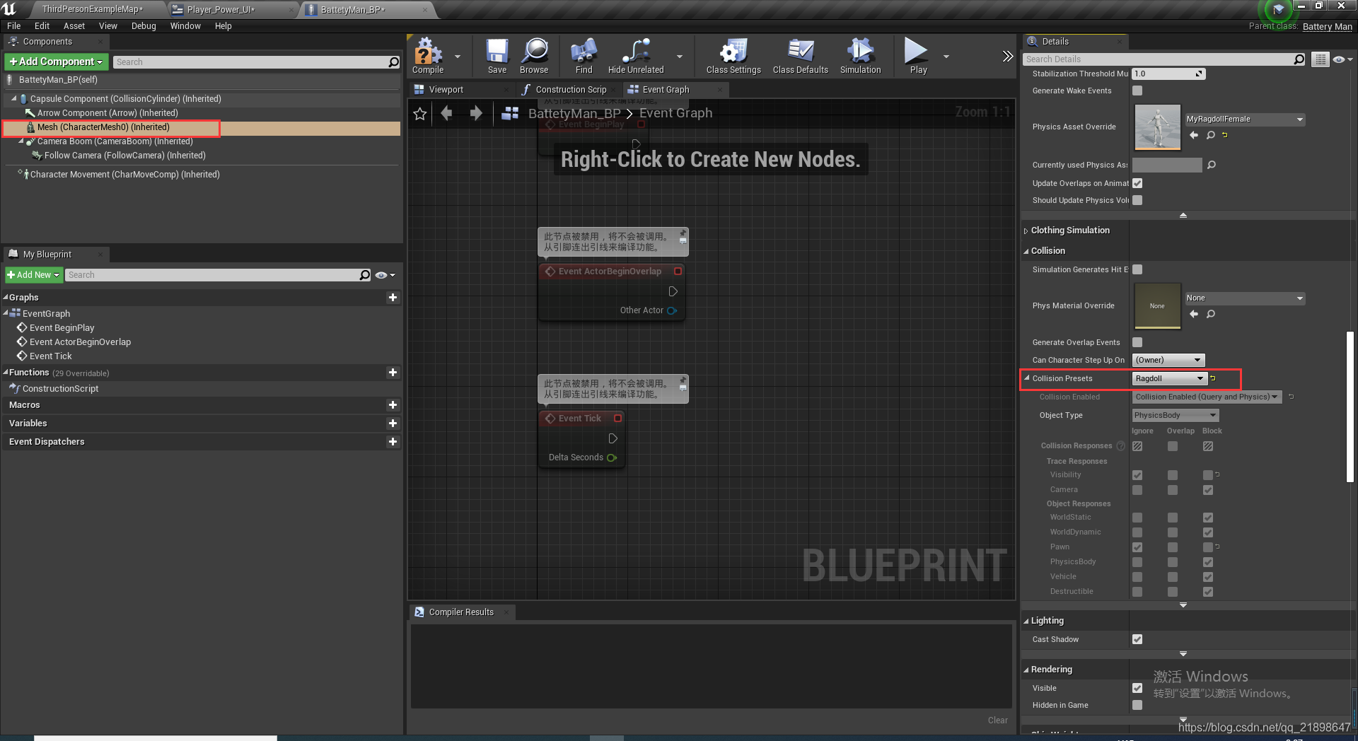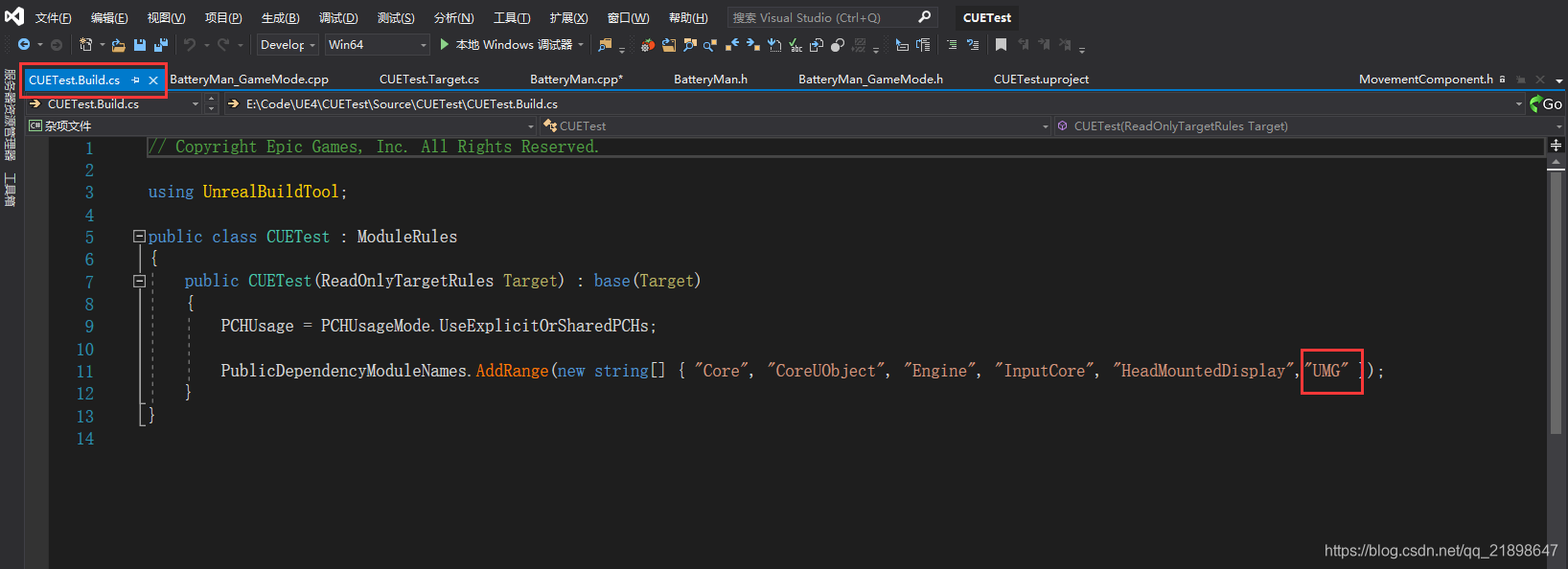 需要注意的是,这些头文件需要添加在#include "BatteryMan.generated.h" 之前,否则会编译出错。