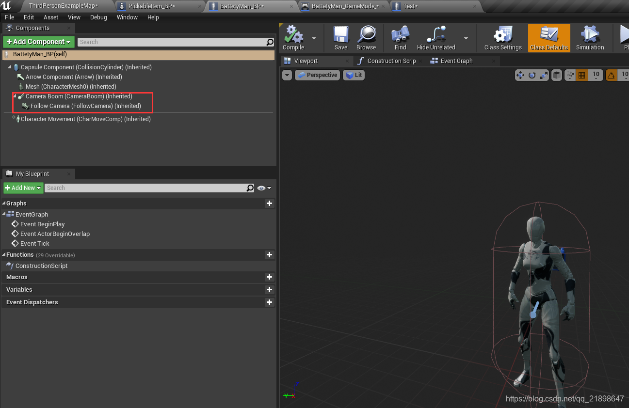 在构造函数ABatteryMan::ABatteryMan()中将摄像机组件初始化