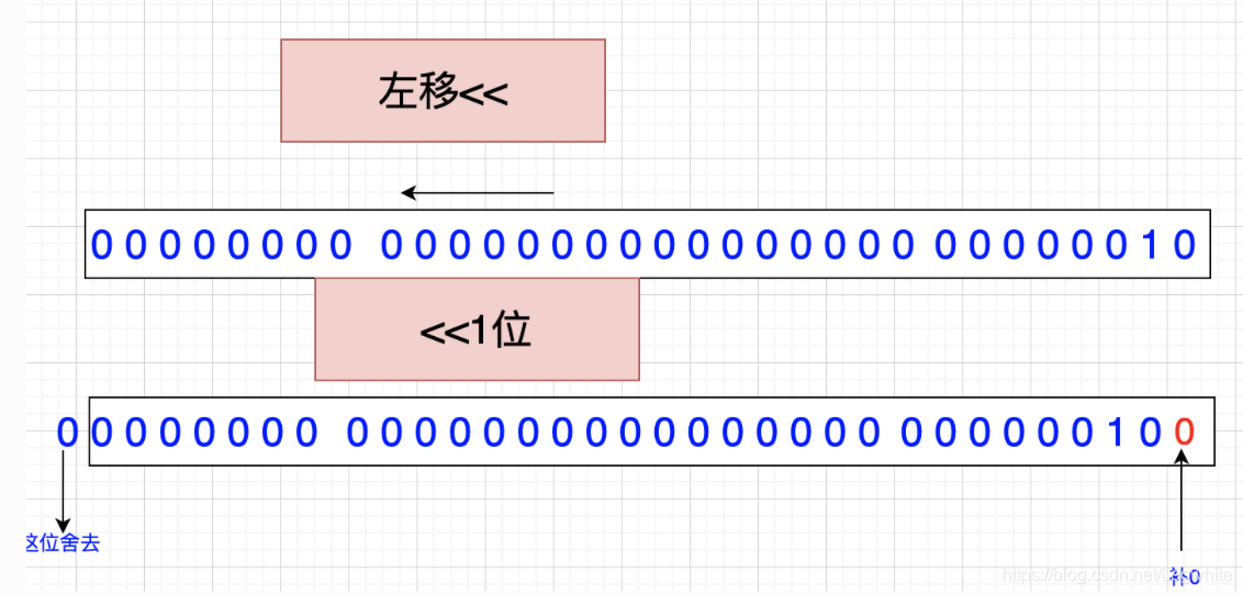 左移,就是二进制位中往左移,舍去最高位,低位补0