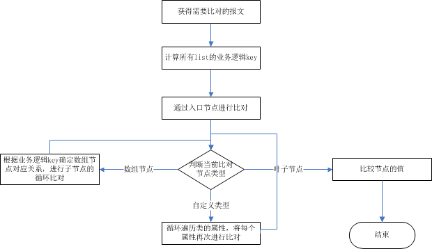 b)比对逻辑通用——针对任意一种报文结构,比对的逻辑是不会变的,即找到一对一的对应关系后,逐一比较对应节点的属性,直到最后的叶子节点。
