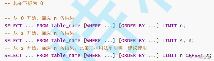 删除表中数据:delete from table_name [WHERE ...] [ORDER BY ...] [LIMIT ...];