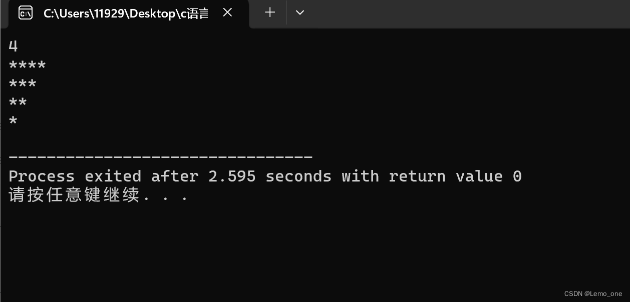 该篇文章展示了如何使用C语言中的嵌套for循环结构,通过printf函数打印出特定的星号图案,以实现简单的控制台输出。
