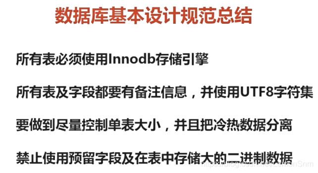 ⑥禁止在数据库中存储图片,文件等大的二进制数据