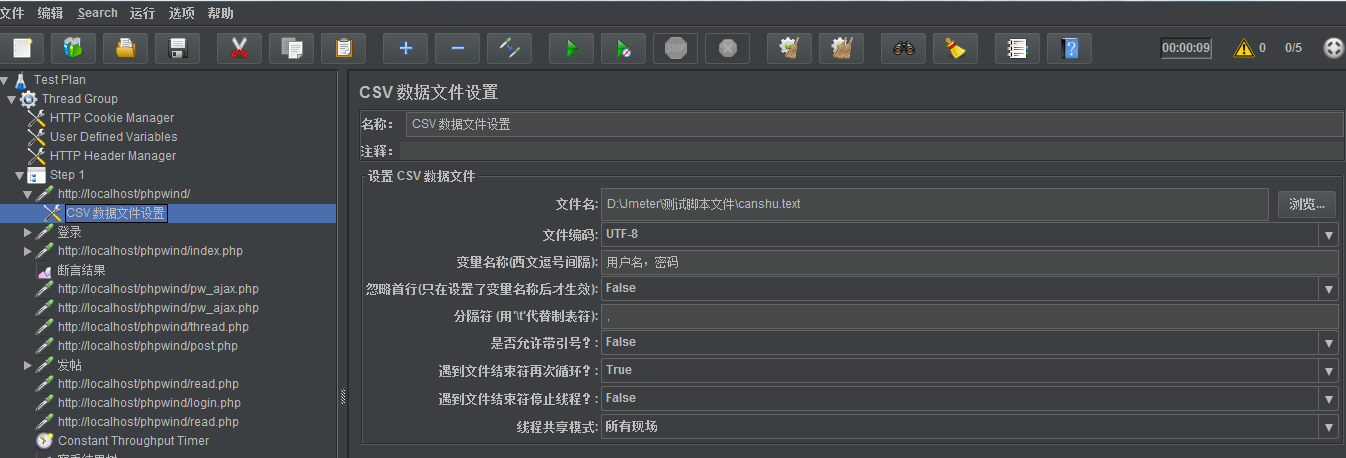 Delimiter:该属性是用来告知Jmeter,参数文件中的列的分隔符。默认是英文逗号