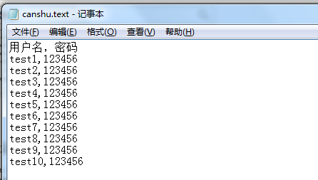 如果没有参数名中:则Jmeter会将参数文件中的第一行解析为参数名称,然后从第二行开始读取值。