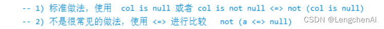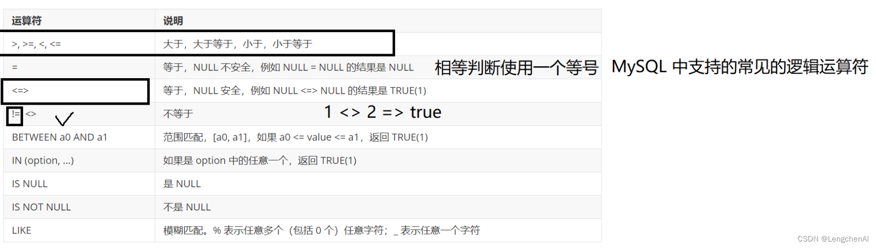 a. <=> :就是逻辑运算符中的全等,能够进行NULL 和 NULL之间的比较,视为true(1)