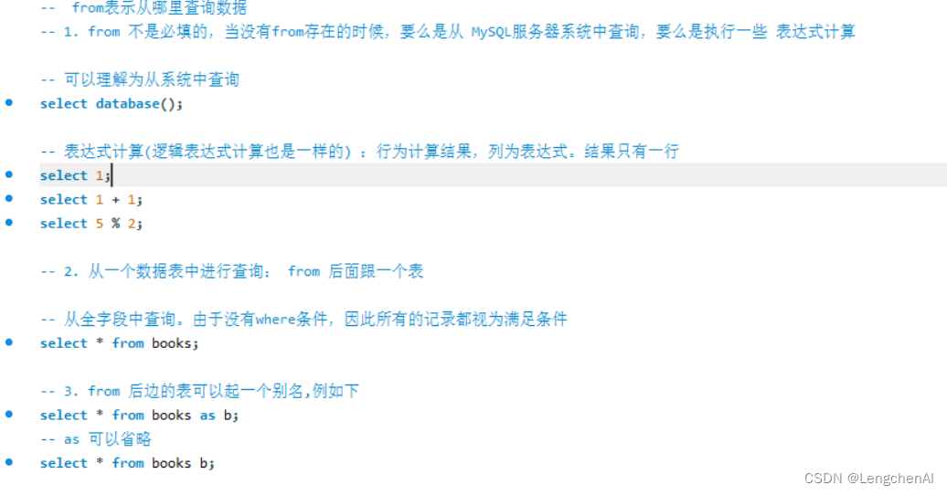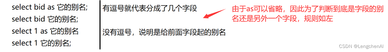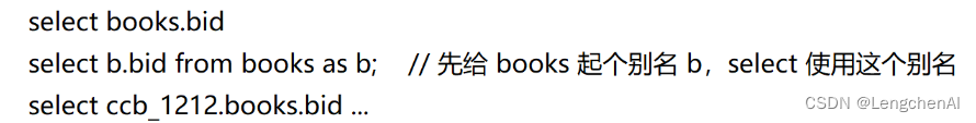 注意:这里的字段名称可以写为全名称(表名称+字段名称或者是库名+表名+字段名), 因此可以出现下列例子