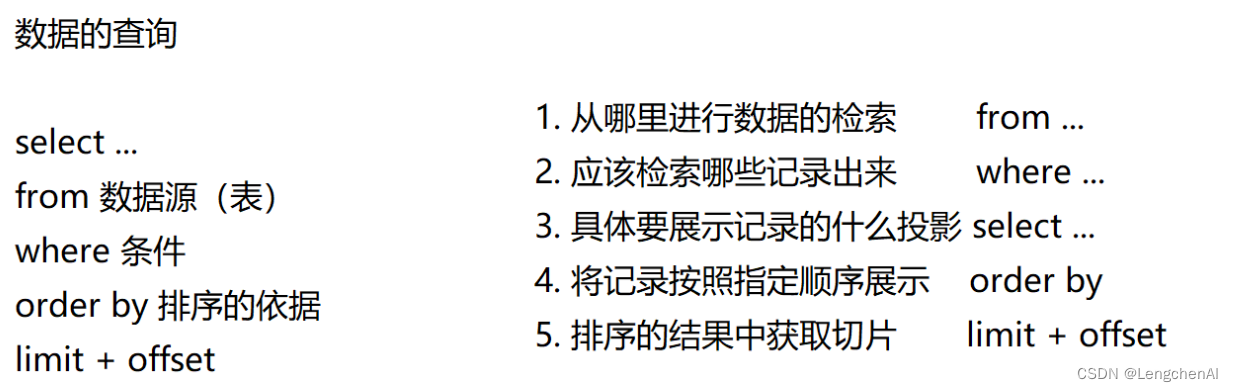 这篇博客主要介绍了MySQL数据库的查询操作,包括查询语句的逻辑执行顺序、FROM和WHERE部分的用法,如逻辑运算符(=,BETWEEN AND,IN,ISNULL等)、投影规则(SELECT *和指定字段)、排序(ORDER BY)以及分片(LIMIT和OFFSET)。还强调了DISTINCT关键字用于消除重复行,以及在排序和分页中的应用。