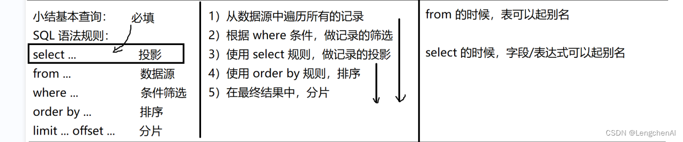 (1)select逻辑上,表示对记录进行了投影,实际上就是选定了展示哪些列