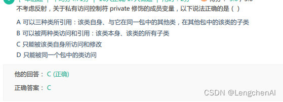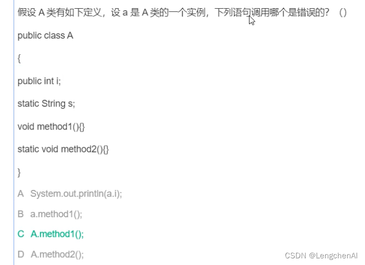 解析:mehod1是成员方法,不能直接通过类来调用,因此C是错误的。成员变量和方法必须通过对象来访问,静态变量和方法才能通过类直接访问。