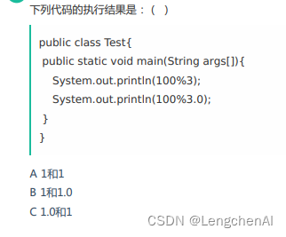 100%3 = 1;100&3.0有个类型提升,因此为1.0