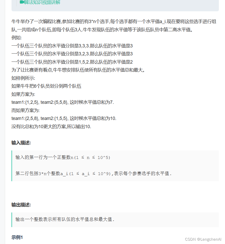 1. 组队竞赛_牛客笔试题_牛客网 (nowcoder.com)