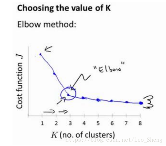 一般根据实际应用需求人为设置聚类数K,不自动设置。但在不知需要多少聚类,而且Elbow method方法适用时,可选择方法中肘关节处K。