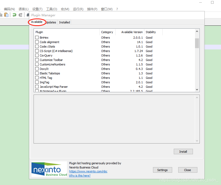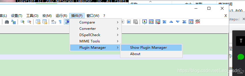 之前的文章有介绍过在notepad++上安装plugin manager,这个插件用于管理和安装notepad++提供各种插件接口,方便查看和选择,plugin manager的安装方式可查看:https://blog.youkuaiyun.com/Leo_csdn_/article/details/84644425