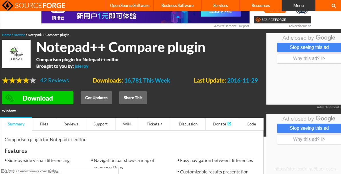 compare插件下载地址:https://sourceforge.net/projects/npp-compare/?source=typ_redirect.