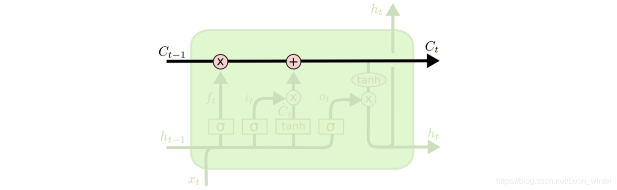 下面给出了LSTM的输入门和遗忘门,是如何作用到细胞状态的示意图,可以看到,遗忘门经过激活函数,是乘在细胞状态上的,如果选用sigmoid激活函数,sigmoid激活函数输出是0,1之间,乘在细胞状态上,就相当于对细胞状态进行了一种"遗忘"操作,其中0表示"完全遗忘"之前 t − 1 t-1 t−1个cell积累的状态值,1表示"完全保留"之前 t − 1 t-1 t−1个cell积累的状态值;而输出门是加在细胞状态上的,就相当于对细胞状态进行了一种"写入"操作。