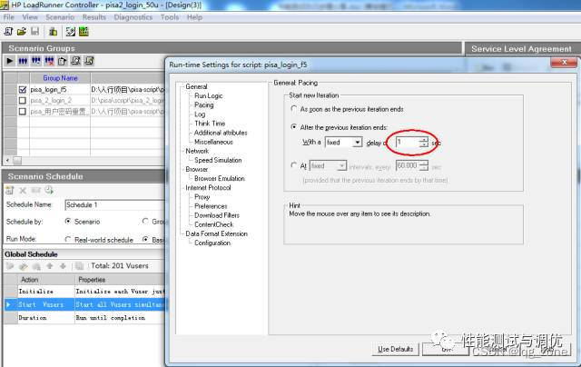 执行策略:常规设置为单个用户迭代n次(比如100次)(Pacing为N秒),取平均响应时间。一般情况下不需要监控资源消耗、数据库处理等。但少数情况下,系统会出现TPS=1与TPS=100消耗的CPU资源差不多的情况,这种情况下,就是性能问题了。