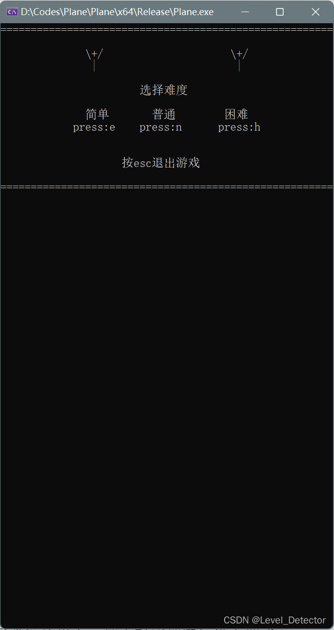 2.在主界面按Enter进入选择难度的界面,按下对应按键后进入游戏。