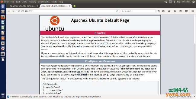 在浏览器中输入服务器地址可以看见默认页面:
