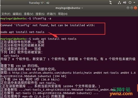 如果提示如下,那么你需要安装一个ent-tools,然后再执行ifconfig -a: