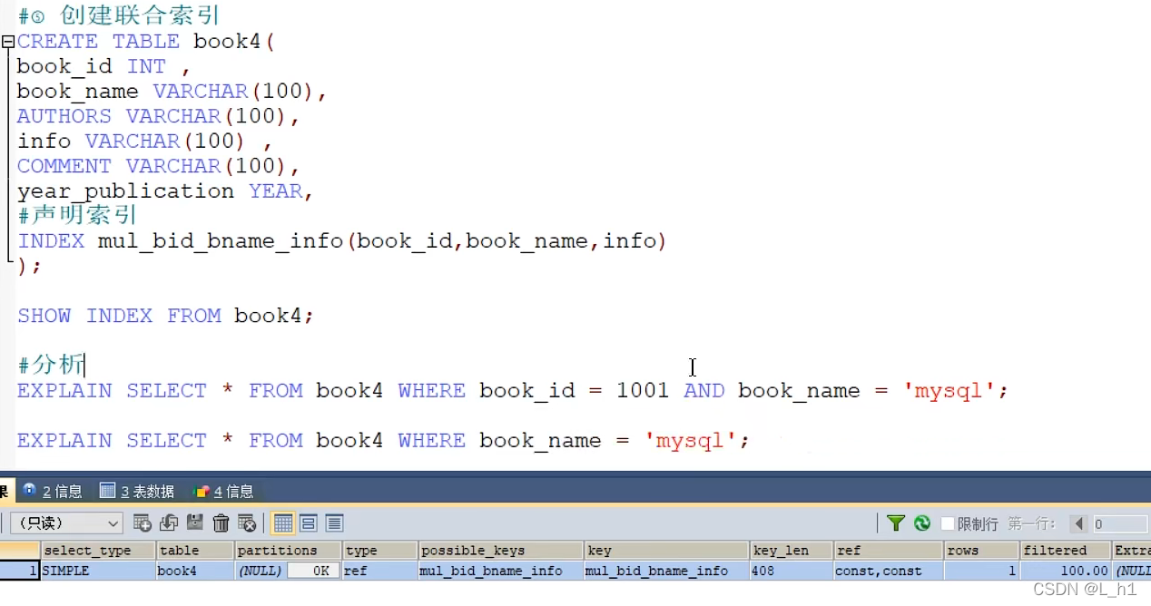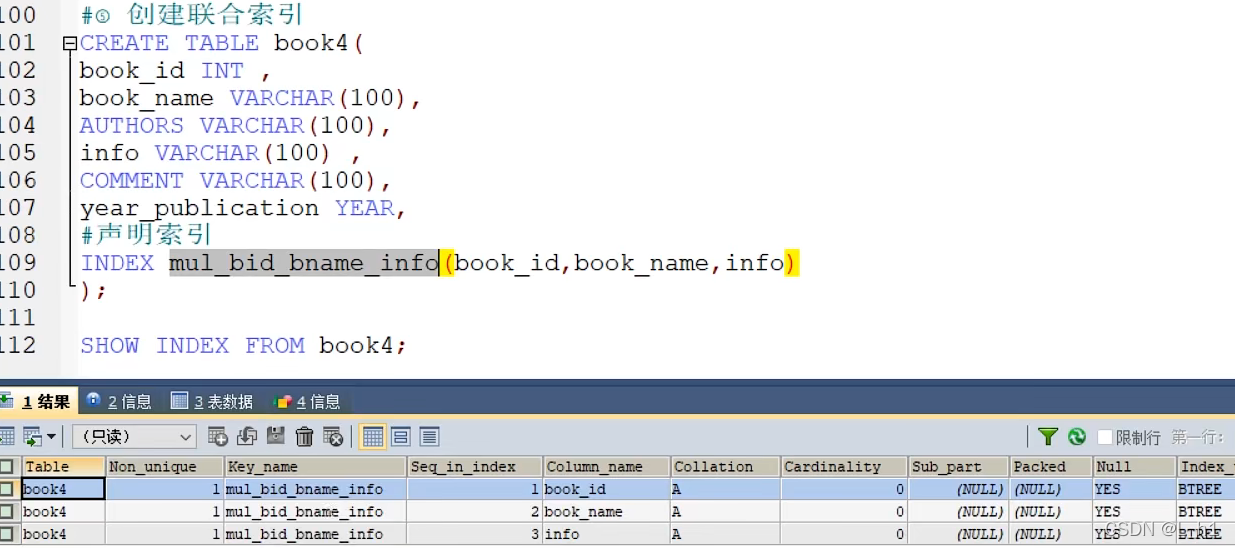 按照book_id、book_name,info的顺序,直接执行book_name是肯定不行的;