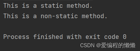 在上面的示例中,staticMethod() 是一个静态方法,它通过创建 MyClass 的对象实例 myObj 来调用 nonStaticMethod(),这是因为非静态方法需要通过对象实例来访问。