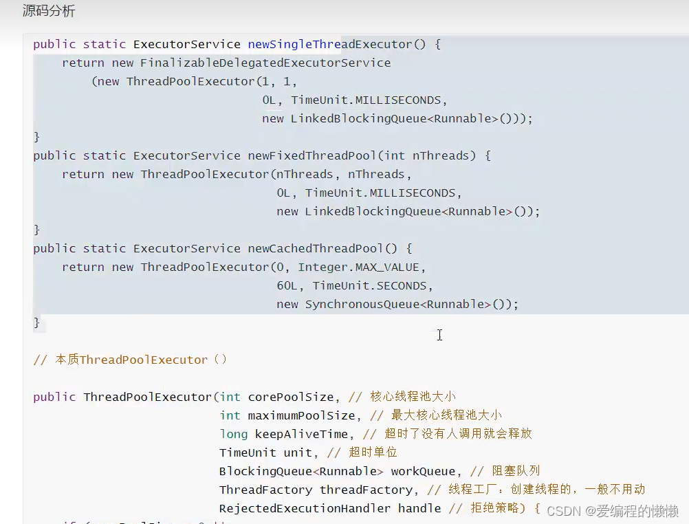 上面三大方法的源码:本质是ThreadPoolExecutor()