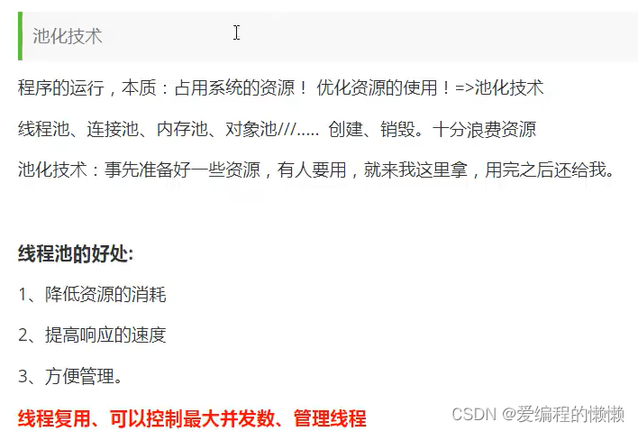 重用线程:线程池会在内部维护一组可重用的线程,避免了频繁地创建和销毁线程的开销,提高了线程的利用率。