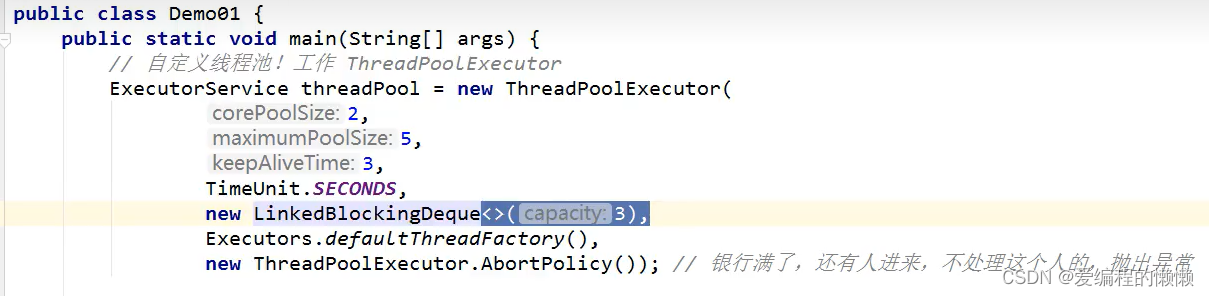 工作队列(BlockingQueue):用于存储待执行的任务。当线程池中的线程都在执行任务时,新的任务会被放入工作队列中等待执行。