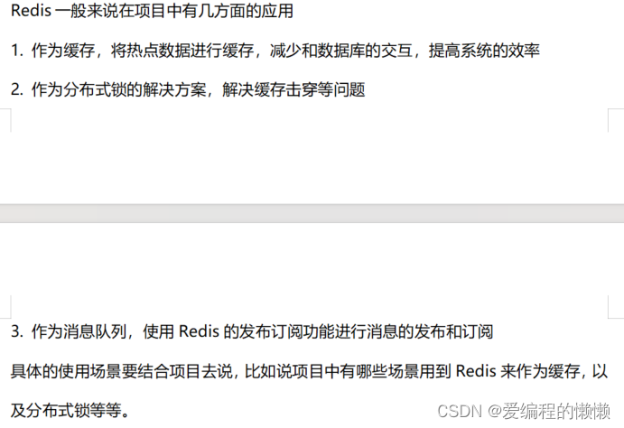 需要根据具体的项目需求和场景来选择合适的 Redis 应用方式,并结合 Redis 提供的丰富功能和数据结构进行开发和优化。同时,要注意合理配置和管理 Redis,确保数据的安全性和高可用性。