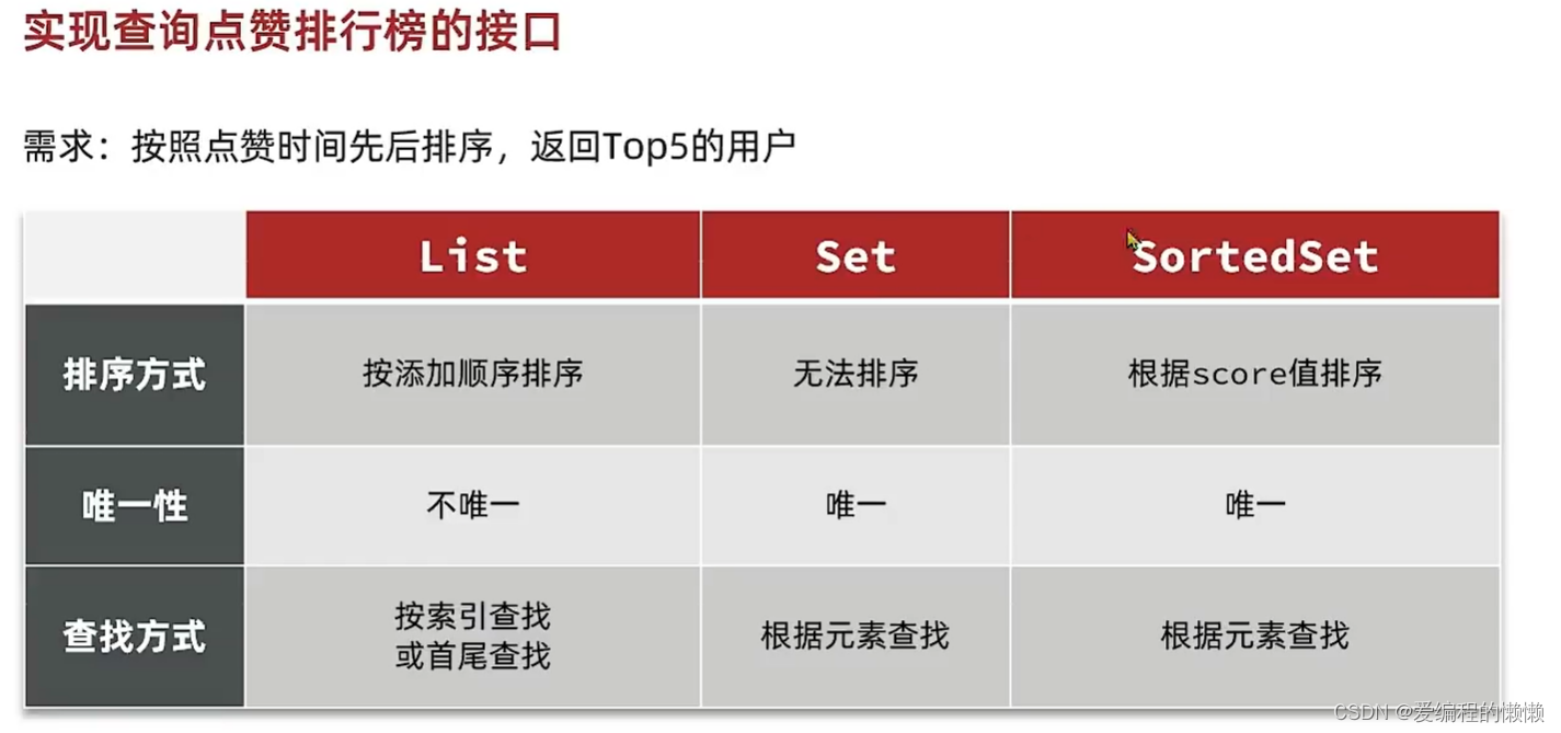这里我们既要满足点赞的唯一性,也要满足排序性,那么,可以用SortedSet集合来实现这些功能