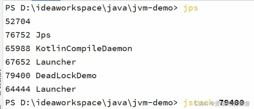 首先在控制台中输入jsp查找运行程序的进程 ,