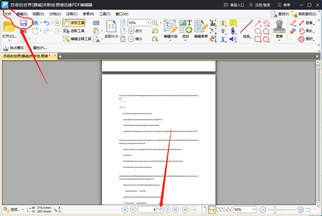 第四步:删除了页面之后我们可以看到下方的页数列表中也相应的少了一页,待检查删除无误后,我们点击左上角的“保存”按钮或者点击“文件”-“保存&另存为”即可。