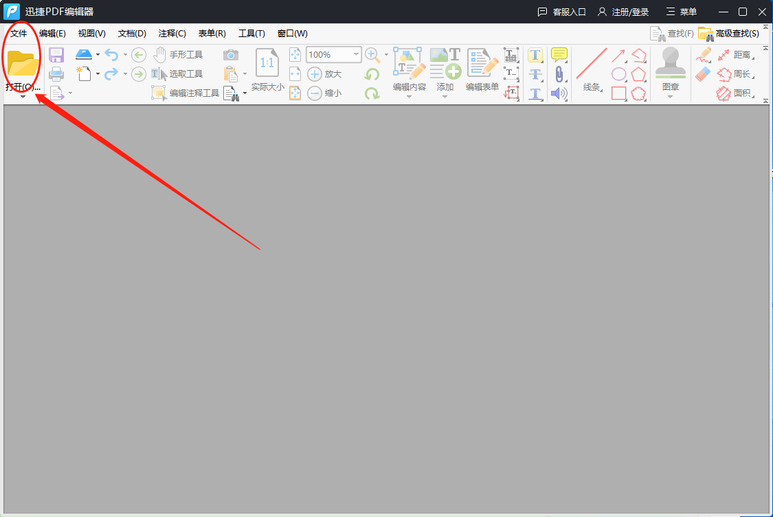 第一步:首先我们在电脑中打开PDF编辑工具,进入页面后在左上方点击“打开”,也可以点击“文件”-“打开”,然后将需要操作的PDF文件添加进来。