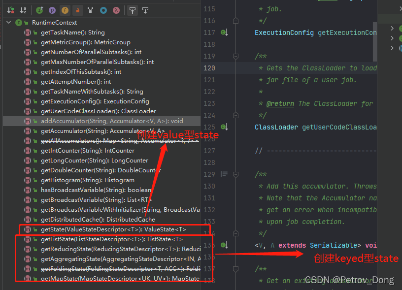 注意,这里有ValueState和KeyedState两种不一样的创建方法,这两种类型在后面多处都有体现