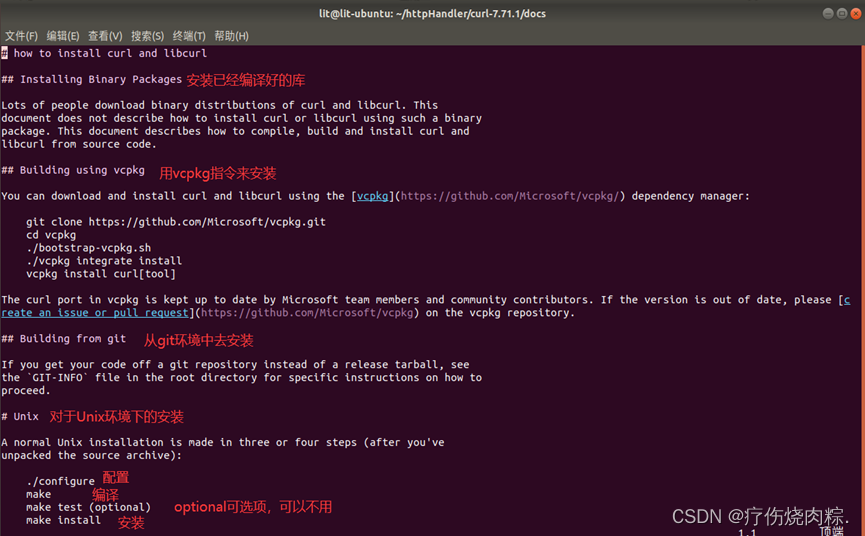 3.解压后生成curl-7.71.1的文件夹,进去里面的docs文件夹直接打开INSTALL.md看看