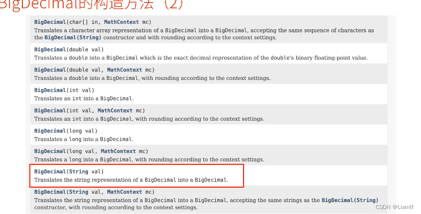 - 当原数使用String表示时,使用构造方法创建BigDecimal对象