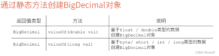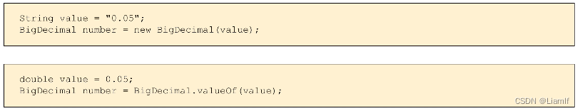 - 当原数使用double表示时,使用静态valueOf()方法创建BigDecimal