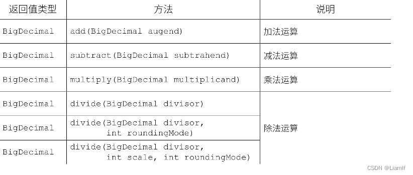public static void main(String[] args) { //创建2个基本类型的浮点数 double d1 =0.1; double d2 =0.2; //计算和 System.out.println("2个double的和"); System.out.println(d1+d2);//计算结果0.30000000000000004,不精确, System.out.println(); //创建BigDecimal对象 String s1="0.1"; String s2="0.2"; BigDecimal number1=new BigDecimal(d1);//BigDecimal.valueOf(d1);0.3//new BigDecimal(s1); BigDecimal number2=new BigDecimal(d2);//BigDecimal.valueOf(d2);0.3//new BigDecimal(s2); /**new BigDecimal(d1)new BigDeccimal(d2)的值 * 为0.3000000000000000166533453693773481063544750213623046875 我们需要调用静态方法 */ //通过BigDecimal求和 System.out.println(number1.add(number2));//0.3 }