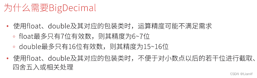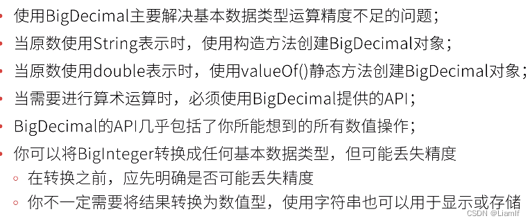 - 当原数使用double表示时,不要使用double作为构造方法参数来创建BigDecimal对象