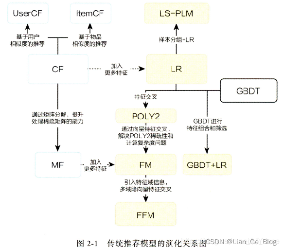 传统推荐模型的演化关系图:(该章内容会根据图中模型依次讲解)