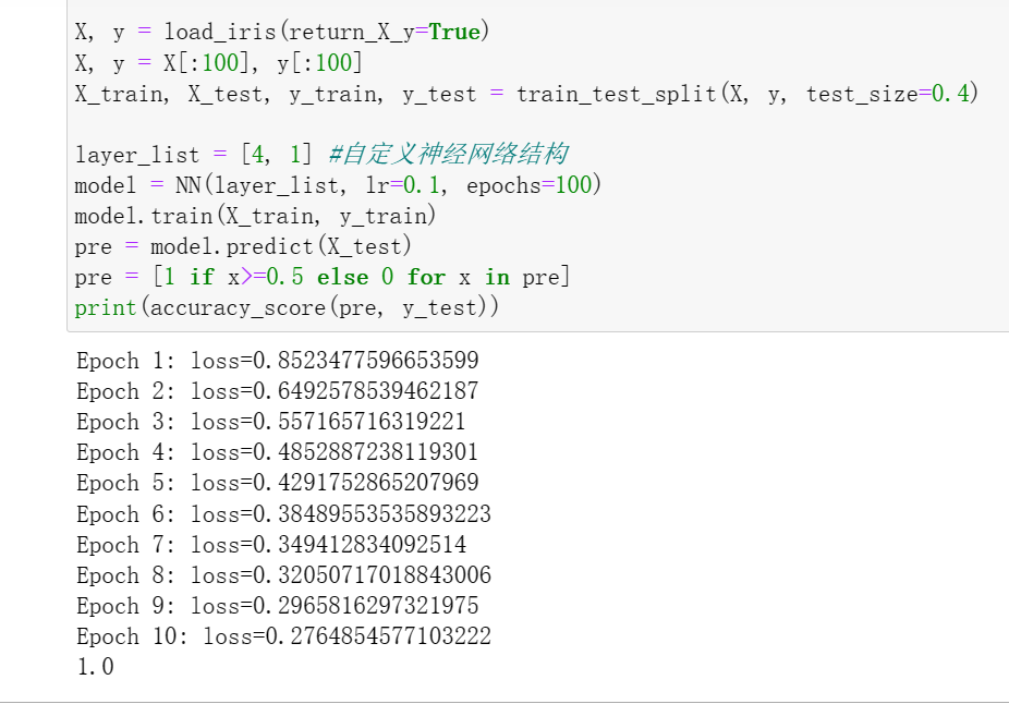(1-self.y) * np.log(1-self.output)) #对数损失