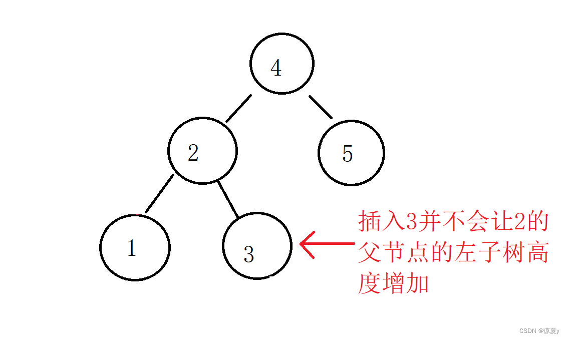 所以,在这种情况下,这棵子树的高度没有改变,也就是说对于2的父节点来讲,这次插入并没有该变其子树的高度。