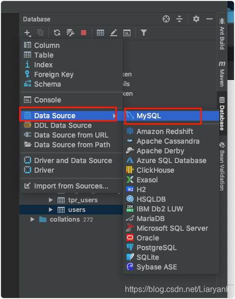 建好SpringBoot项目之后,如下图所示,找到这个Database