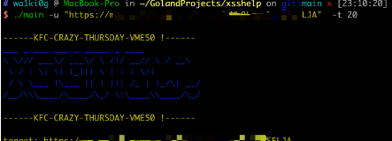 xsshelp version: 1.0.0``Usage: [-ut] [-u url] [-t thread] [-h help]`` ``Options:` `-h this help` `-t int` `thread Num (default 8)` `-u string` `a target url(Please add http or https)