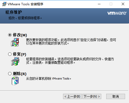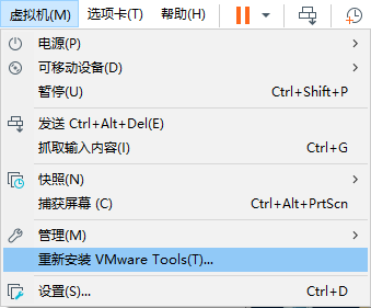 VMware Tools软件也可以手动,通过菜单虚拟机–>重新安装VMware Tools。