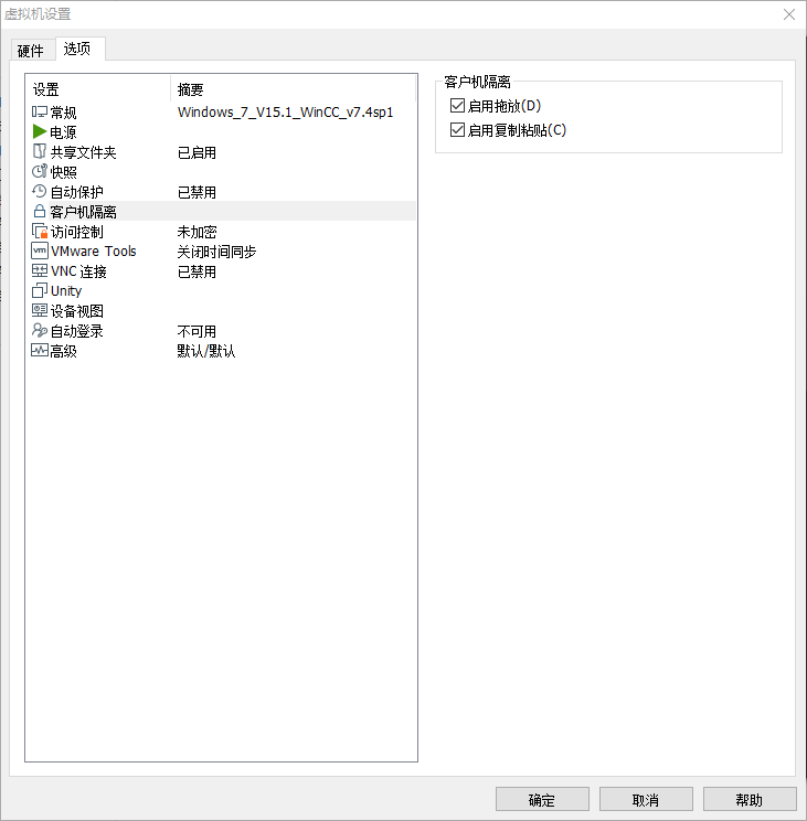 打开虚拟机的设置,点击“选项”,选中客户机隔离,查看是否选择了启动拖放和复制粘贴功能。